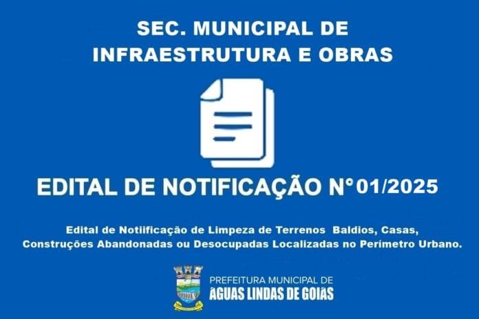 EDITAL DE NOTIFICAÇÃO DE LIMPEZA DE TERRENOS BALDIOS, CASAS, CONSTRUÇÕES ABANDONADAS OU DESOCUPADAS LOCALIZADAS NO PERÍMETRO URBANO.