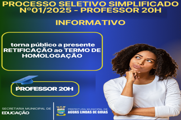 A SECRETARIA MUNICIPAL DE EDUCAÇÃO, no uso de suas atribuições legais e, tendo em vista delegação de competência prevista na Lei Orgânica Municipal para exercício da Administração Municipal, por intermédio do Secretário Municipal de Educação, na qualidade de Gestor do FUNDEB – Fundo de Manutenção e Desenvolvimento da Educação Básica e Valorização dos Profissionais da Educação, nomeado através do Decreto nº 4.194/2025, torna público a presente RETIFICAÇÃO ao TERMO DE HOMOLOGAÇÃO contendo o resultado final do Processo Seletivo Simplificado EDITAL nº 001/2025, publicada em 31/07/2025;