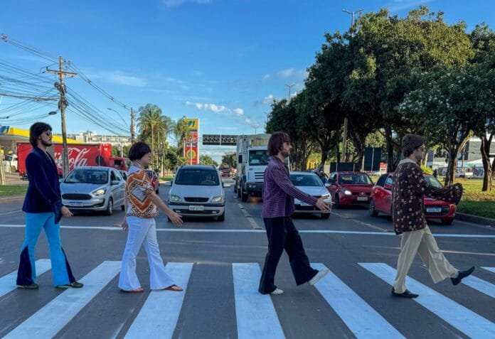 Durante a ação educativa, atores da Companhia Teatral Caixa Cênica encenaram uma apresentação inspirada no icônico grupo musical The Beatles. Em 1969, a banda gravou o álbum Abbey Road, cuja capa mostra John Lennon, Paul McCartney, George Harrison e Ringo Starr atravessando uma rua de Londres – que inspirou o título do disco – em uma faixa de pedestres.