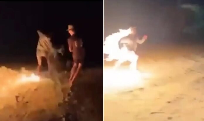 Os quatro amigos estavam sentados ao redor de uma fogueira consumindo bebida alcoólica quando B. M. começou a “brincar” com um galão de gasolina.