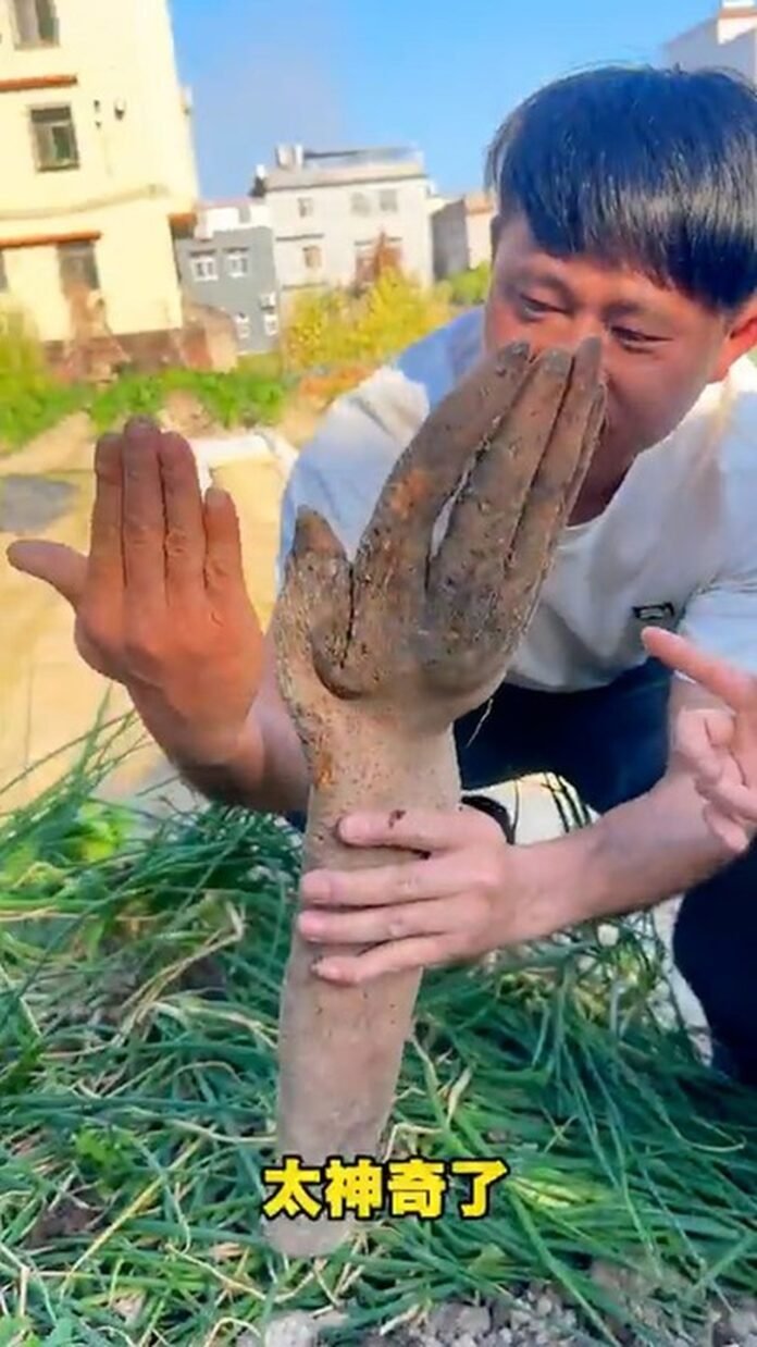 Inhame no formato de mão humana assusta agricultor em Guangdong, na China