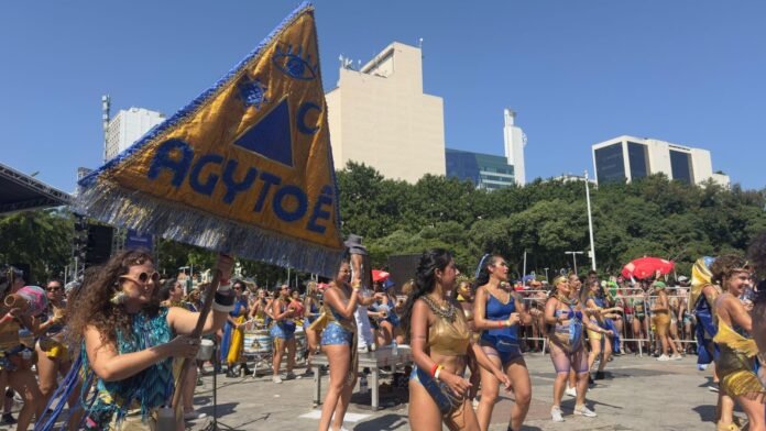A homenagem às agremiações do Rio também marcou presença. O casal Nunes, de 40 anos, e Lucas Batista, de 41, ao lado do amigo Leonardo Fraga, de 41, transformaram o asfalto em um pedaço da Sapucaí para exaltar a Paraíso do Tuiuti. Amigos há três décadas, o grupo carregava no peito o otimismo com a escola de São Cristóvão.