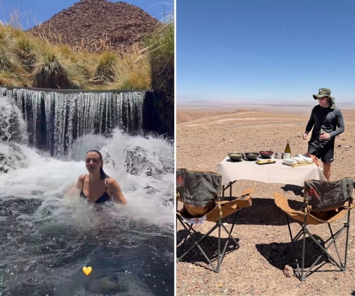 Alice Wegmann e namorado almoçam em deserto no Chile