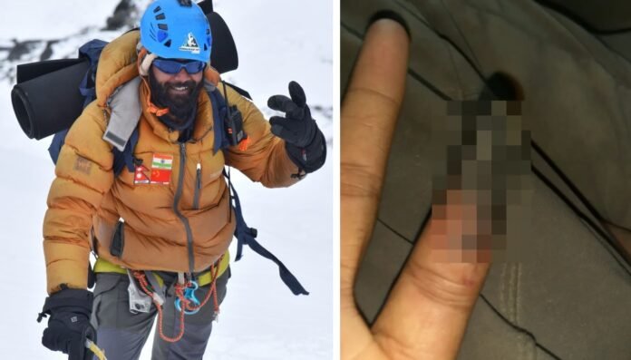 O indiano Madhusudan Patidar, de 29 anos, perdeu parte do dedo mínimo da mão esquerda após retirar a luva por quatro minutos para ajustar o equipamento de câmera no topo do Monte Everest, a montanha mais alta do mundo. A sensação térmica de 35 graus negativos foi o que causou as queimaduras por congelamento do membro.