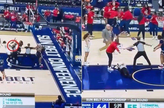 A confusão começou num garrafão entre Cordasia Harris, de South Alabama, e Tracey Hueston, de Coastal Carolina. Houeston partiu para cima de Harris. Uma companheira de South Alabama segurou Harris para impedi-la de revidar. Outra jogadora do South Alabama, junto com uma árbitra, se colocou entre as duas.