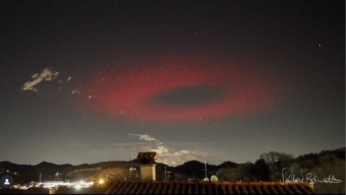 Um círculo de luz vermelha pairou sobre a pequena cidade de Possagno, na Itália, pela segunda vez desde 2023. E o fotógrafo Valter Binotto estava lá nas duas vezes, tirando fotos que desafiam a lógica.