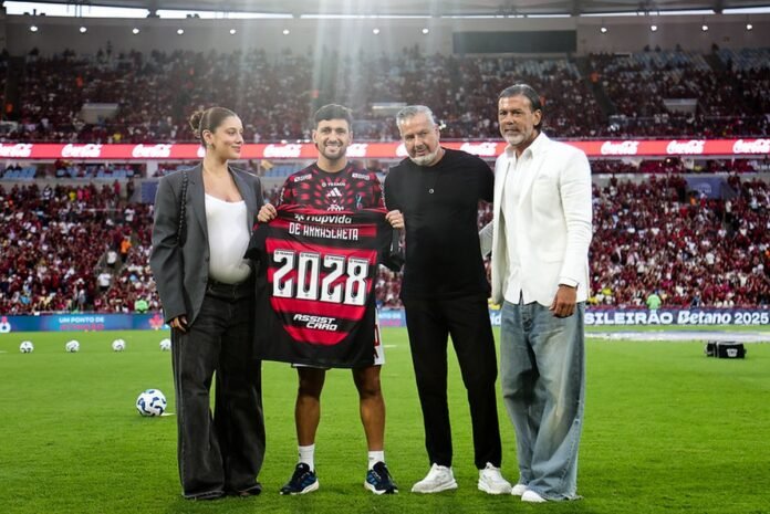 O novo acordo entre Flamengo e Arrascaeta foi assinado na última nesta sexta-feira, no CT George Helal, e ainda prevê a extensão automática do vínculo por mais uma temporada — até 2029 —, caso o uruguaio cumpra as metas estabelecidas entre as partes.