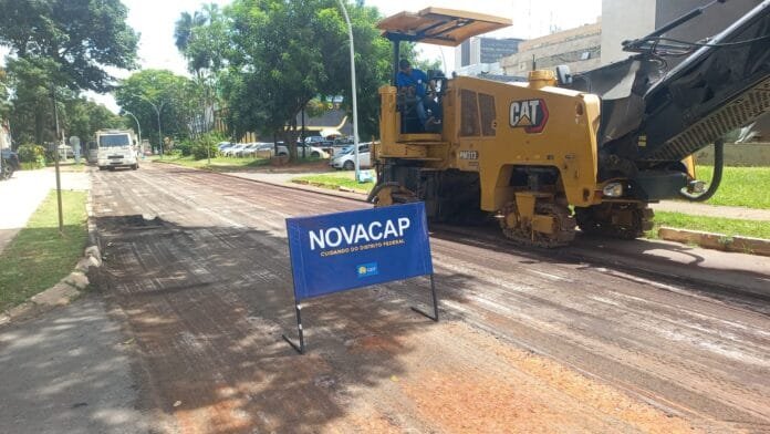 A Companhia Urbanizadora da Nova Capital do Brasil (Novacap) deu início às obras de fresagem e aplicação de nova capa asfáltica na Quadra 2 do Setor Hoteleiro Sul, atendendo a uma demanda registrada no Sistema Ouv-DF. O serviço abrange um trecho de aproximadamente 4 mil m², incluindo o estacionamento e o acesso ao Hotel Bonaparte, áreas que se encontravam bastante danificadas.