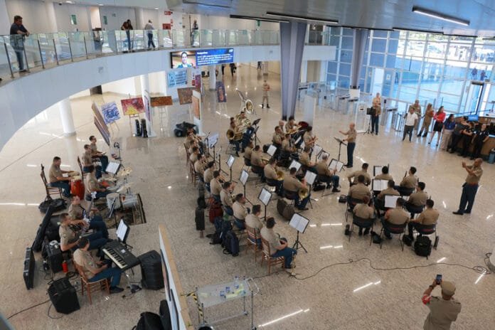 Sob a regência do capitão Dias, tenente Carvalho e tenente Felipe, o grupo executou um repertório musical.