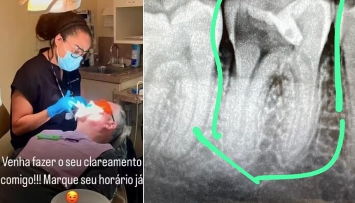 Segundo Ana Cristina, que também tem passaporte americano, ela higienizou a área do primeiro molar inferior esquerdo, que apresentava uma lesão, e a cobriu com um curativo, informando ao paciente, que também é brasileiro, que ele deveria procurar um dentista especializado para fazer o tratamento adequado, conforme a radiografia havia indicado. De acordo com o relato do paciente, que, segundo Ana Cristina, está em situação ilegal nos EUA, a assistente teria aplicado anestesia e perfurado um dente dele, interrompendo em seguida o procedimento.