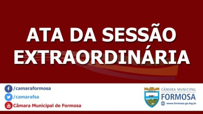 Sessão Extraordinária iniciada às nove horas e dois minutos do dia vinte e sete de dezembro de dois mil e dezenove, no Plenário Arthur Magalhães Filho. Comprovado o quórum regimental, o Presidente declarou, em nome de Deus, aberto os trabalhos, com a presença dos vereadores: Edmundo Nunes Dourado – Mundim (Presidente); Rafael de Almeida Barros – Professor Rafael (Vice-Presidente); Eduardo Leonel de Paiva – Eduardinho de Paiva (2º Secretário); Acinemar Gonçalves Costa – Nema; Aristóteles de Lacerda Neto – Netinho Lacerda; Carlos Gomes de Moura – Carlim da Vila; Clayton Dantas Dias – Ceguinho; Divino Ramos da Silva; Joelson Roberto Vaz Santiago – Joelson “Trovão”; Jurandir Humberto Alves de Oliveira; Luziano Martins de Araujo; Miguel Rubens dos Santos Oliveira – Macarrão; Roberta Brito Schwerz Funghetto e Wenner Patrick de Sousa. Os Vers. Bruno Rogério de Araújo (1º Secretário), Almiro Francisco Gomes – Miro Bikes (3º Secretário) e Domingos de Sena Lopes Filho não compareceram à Sessão. EXPEDIENTE: Não houve leitura da ata anterior, uma vez que o documento foi aprovado na Sessão Extraordinária do dia 16 de dezembro de 2019. ORDEM DO DIA: PROJETO EM 1ª, 2ª e 3ª FASES DE DISCUSSÃO E VOTAÇÃO: Projeto de Lei Ordinária oriundo do Executivo – O PL 039/19 que “Institui o Programa de Prática Desportiva Formal no Município de Formosa e dá outras providências”, foi aprovado em todas as fases por 13 votos favoráveis e 03 ausências (Vers. Bruno Araújo, Domingos Filho e Miro Bikes). Áudio e vídeo das Sessões disponíveis nas Atas Eletrônicas n.º 013/19 (CD e DVD) e no Sistema de Apoio ao Processo Legislativo (SAPL). Nada mais a tratar, o Presidente agradeceu a presença de todos e declarou encerrados os trabalhos às nove horas e vinte e quatro minutos. E, para constar, eu, Eduardo Leonel de Paiva (2º Secretário), lavrei a presente ata que depois de lida e se aprovada será assinada pelos membros da Mesa Diretora.