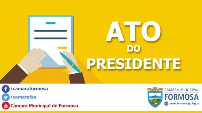Considerando o contido no art. 23, I, alínea “a”, da Resolução nº 4, de 12 de dezembro de 2008, Regimento Interno da Câmara Municipal de Formosa, que determina a forma em que os atos do Presidente da Câmara de regulamentação dos serviços administrativos devem ser realizados;