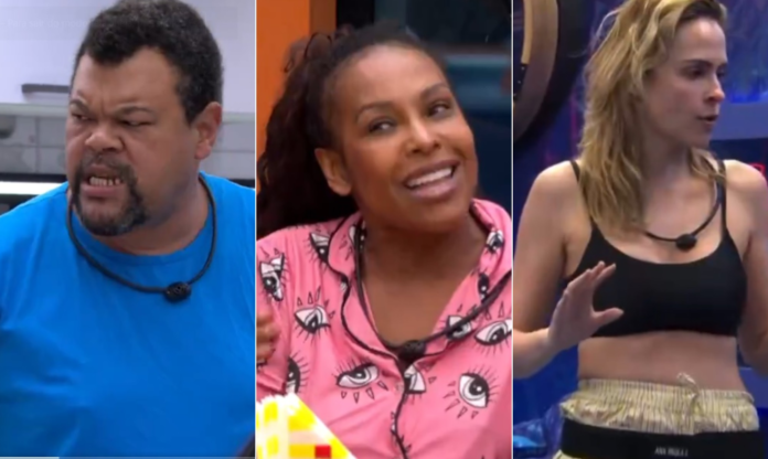 “Você acabou de cometer uma agressão. Você é a próxima sair. Acabou de agredir. É a regra do jogo”, acusou Babu. “Eu agredi o que?”, disse Sol. “Pegou no meu braço e balançou. E pisou no meu pé. Depois, do nada, se controlou, ficou quieta, grita de novo…”, disse Ana Paula. Até que Sol foi levada para a área externa pelos aliados.