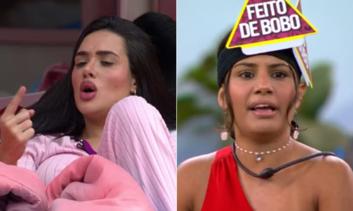 A veterana, então, insiste: “Você tem que entender, Jordana, que eles se protegem”. A advogada rebate: “Cuide do seu grupo”. Marciele discorda da amiga e completa: “Eu que estou sofrendo com isso”. Jordana diz: “Eu também discordo da sua forma de pensar, e a gente já conversou”. A discussão entre elas se intensifica nesse momento.