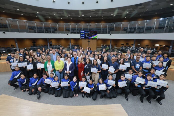 O evento teve lugar no Plenário Iris Rezende e homenageou o trabalho desenvolvido pelo Cemadipe na formação de crianças e jovens, além do impacto positivo gerado nas comunidades atendidas.