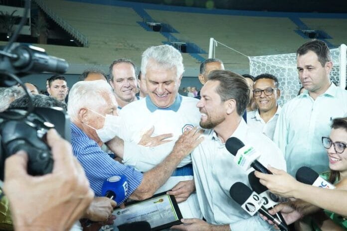 Bruno Peixoto homenageia Leonino Caiado, idealizador do Serra Dourada, nas comemorações dos 50 anos do estádio