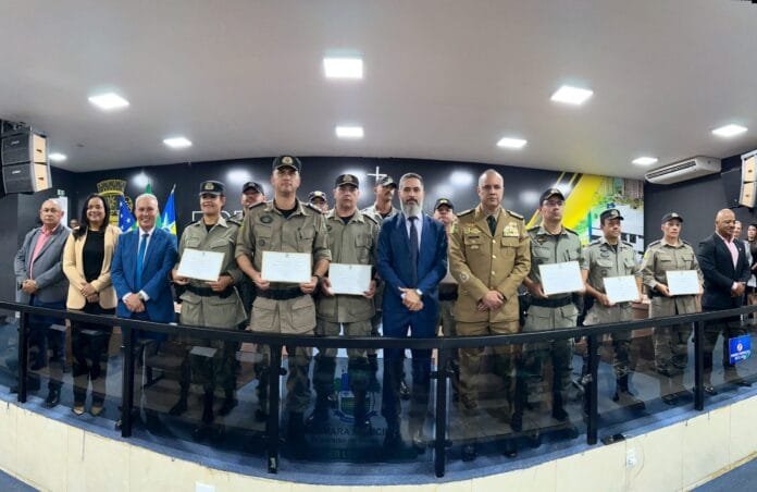 No noite desta quarta-feira, 16 de outubro, a Câmara Municipal de Valparaíso de Goiás promoveu uma sessão solene para comemorar os 166 anos da Polícia Militar do Estado de Goiás. O evento, idealizado pelo presidente da Casa, Alceu Gomes, foi realizado no plenário Arquicelso Bites em uma noite de reconhecimento e homenagem aos homens e mulheres que se dedicam incansavelmente à proteção e segurança da população do nosso município.