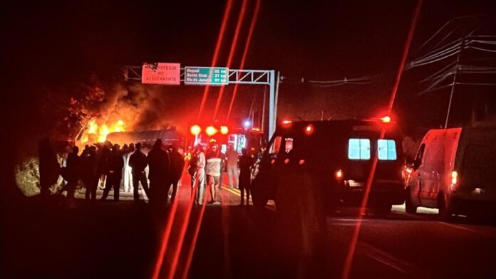 Caminhão de combustível sofre acidente na Rio-Santos e explosões interditam estrada nos dois sentidos
