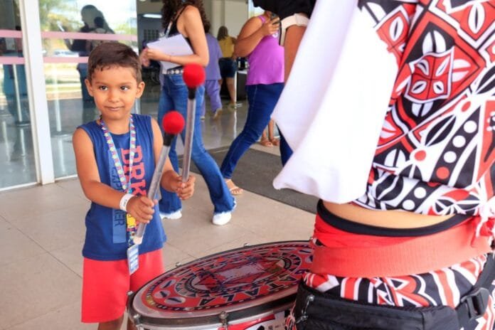 No mesmo dia, o Hospital recebeu as percussionistas do Grupo Batalá Brasília, que trouxeram seus surdos, dobras, caixas e repiques para alegrar a tarde do ambulatório. Luiz Miguel Ribeiro, 5 anos, dançou durante a apresentação e, depois, surpreendeu as artistas ao demonstrar talento na percussão. A mãe do menino, Lays Ribeiro, conta que ele se interessou pela música durante uma internação no HCB: “Ele estava intubado e a única coisa que o acalmava era o som do xilofone; ele ouvia e começava a batucar com o dedinho. Hoje, ele já toca bateria no culto infantil da nossa igreja”.