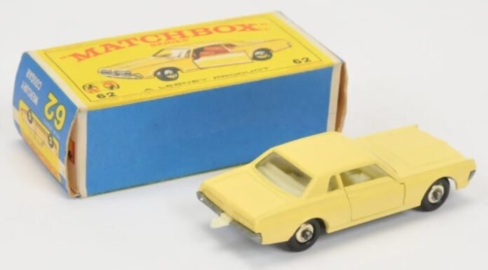 Trata-se de um exemplar Matchbox número 62, uma réplica de um Mercury Cougar de 1968, vendido mês passado pela Vectis, casa de leilão sediada em Stockton (Inglaterra).