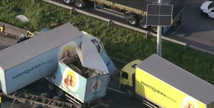 Um acidente na pista sentido Rio da Rodovia Presidente Dutra, na altura de Nova Iguaçu, na Baixada Fluminense, na manhã desta sexta-feira, deixou uma pessoa gravemente ferida e outra com lesões leves. A batida envolveu uma carreta, três caminhões e um automóvel, segundo o perfil no X da Ecovias Rio Minas. O trânsito foi interditado na pista central no Km 18 da via. Por volta das 7h, o engarrafamento no trecho chegava oito quilômetros.