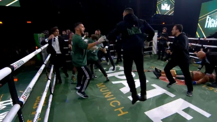 Werdum (de moletom preto e luva branca) atinge filho de Popó em briga após luta