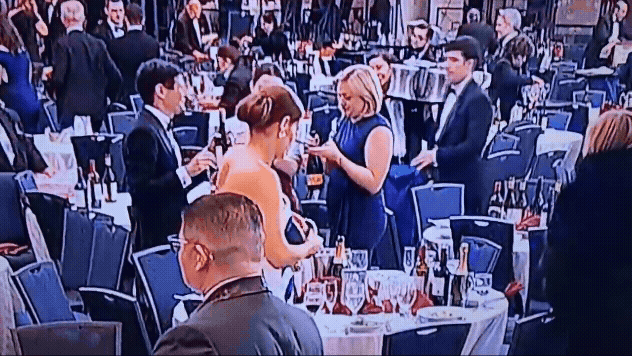 As imagens da mulher pegando as garrafas de vinho rapidamente viralizaram. Mas os internautas ficaram divididos sobre se o ato de roubar o vinho foi de mau gosto, considerando o que poderia ter sido uma noite trágica se o atirador não tivesse sido contido, ou uma atitude fiscalmente prudente, dado o alto preço (cerca de US$ 500) do jantar sofisticado. No momento do incidente, o Jantar dos Correspondentes da Casa Branca havia acabado de servir o primeiro prato — uma salada de burrata e ervilhas frescas.