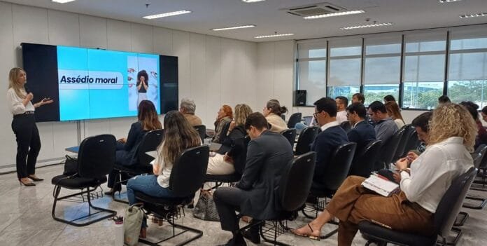 A prevenção e o enfrentamento ao assédio moral e sexual na Administração Pública foram tema de um curso de seis horas ministrado pela Controladoria-Geral do Distrito Federal (CGDF), representada por Michelle Heringer, chefe da Assessoria de Apoio aos Julgamentos e presidente da Comissão Especial de Combate e Prevenção ao Assédio Moral e Sexual no Distrito Federal. A capacitação, solicitada pelo Ministério Público do Distrito Federal e Territórios (MPDFT), foi realizada na sede do órgão, nos dias 7 e 8 de abril, e contou com a participação de cerca de 50 pessoas, entre promotores de Justiça e servidores da instituição. Um dos objetivos foi apresentar a política de combate e prevenção ao assédio na Administração Pública do DF, além de discutir os conceitos relacionados ao tema no ambiente de trabalho.