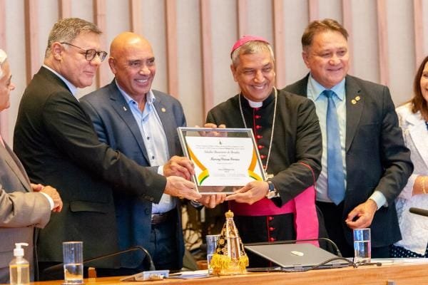 A Câmara Legislativa concedeu, nesta segunda-feira (10), o título de Cidadão Benemérito de Brasília ao arcebispo do Ordinariado Militar do Brasil Dom Marcony Vinícius Ferreira. O evento foi prestigiado por representantes dos três poderes, autoridades eclesiásticas, familiares e admiradores do sacerdote.