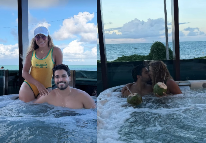 Ah, o amor… Iran Ângelo, de 55 anos, está aproveitando o feriado de Páscoa para curtir dias ao lado do namorado, o engenheiro Lucas Suassuna, de 28. A empresária compartilhou momentos com o rapaz na hidro de sua casa, em João Pessoa, na Paraíba.