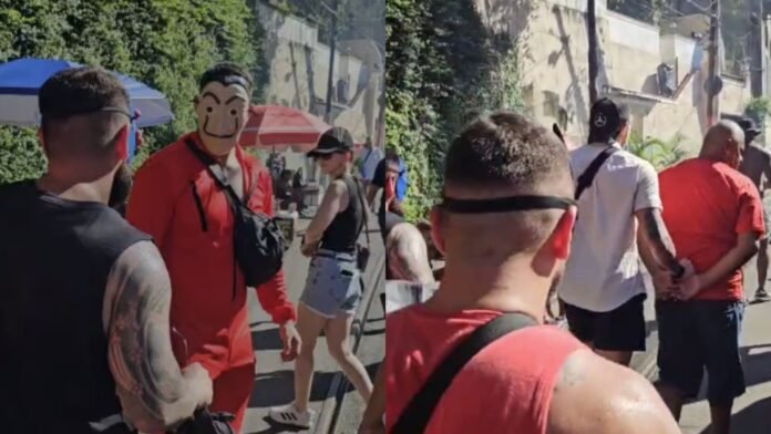 Os policiais que atuaram na ação usavam máscaras de heróis dos quadrinhos, como Batman e Capitão América. Um outro agente vestia o uniforme utilizado pelos personagens da série “La casa de papel”, composto por um macacão vermelho e uma máscara que homenageia o pintor espanhol Salvador Dali.