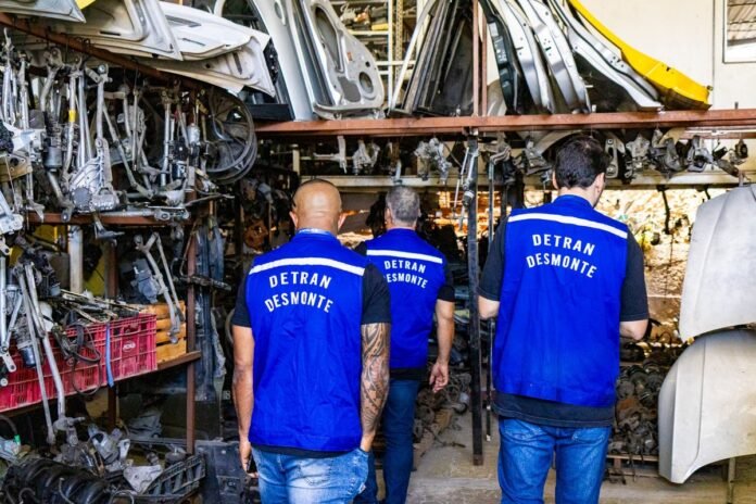 Agentes da Operação Desmonte, força-tarefa coordenada pelo Detran RJ para fiscalizar o comércio de peças e sucatas automotivas, interditaram um ferro-velho nesta terça-feira em Nova Iguaçu, na Baixada Fluminense. O estabelecimento não possuía credenciamento junto ao departamento de Trânsito para funcionar e as peças não tinham as etiquetas de identificação padronizadas pela autarquia, que asseguram ao consumidor a procedência lícita das mercadorias.