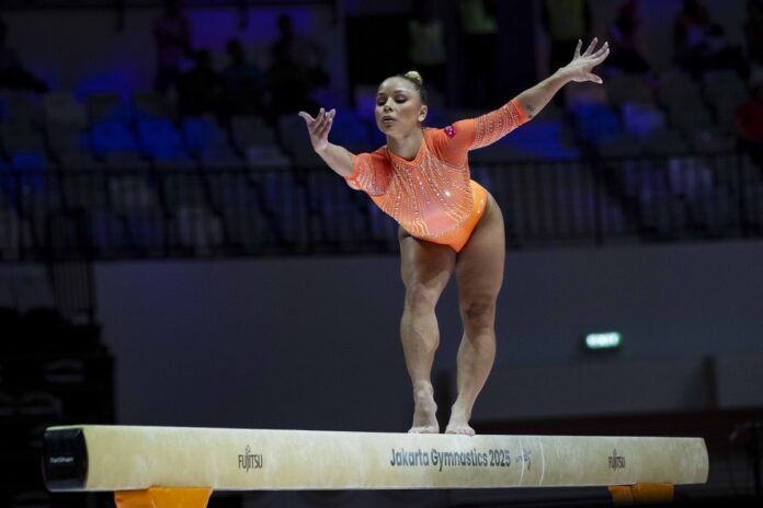 Flávia Saraiva brilhou na fase classificatória do Mundial de Ginástica Artística em Jacarta, na Indonésia. Nesta terça-feira, a ginasta carioca de 26 anos obteve a segunda melhor nota na trave de equilíbrio, seu aparelho favorito (13.833). O primeiro lugar coube à chinesa Qingying Zhang. Dona de duas medalhas na última edição do Mundial, em Antuérpia, na Bélgica, em 2023, o bronze no solo e a prata por equipes, a ginasta compete na final da trave neste sábado. A programação das finais por aparelhos terá início às 4h (de Brasília), com transmissão do Canal Olímpico do Brasil, Cazé TV e SporTV2.