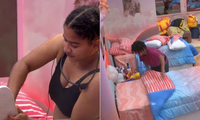 Eliminada por Alberto Cowboy da prova do líder do “BBB 26”, Milena deixou o provódromo furiosa e decidida a se vingar. A mineira foi até o quarto do também mineiro e desarrumou a cama dele toda, jogou lençol no chão, e aproveitou para sujar calçados e meias.