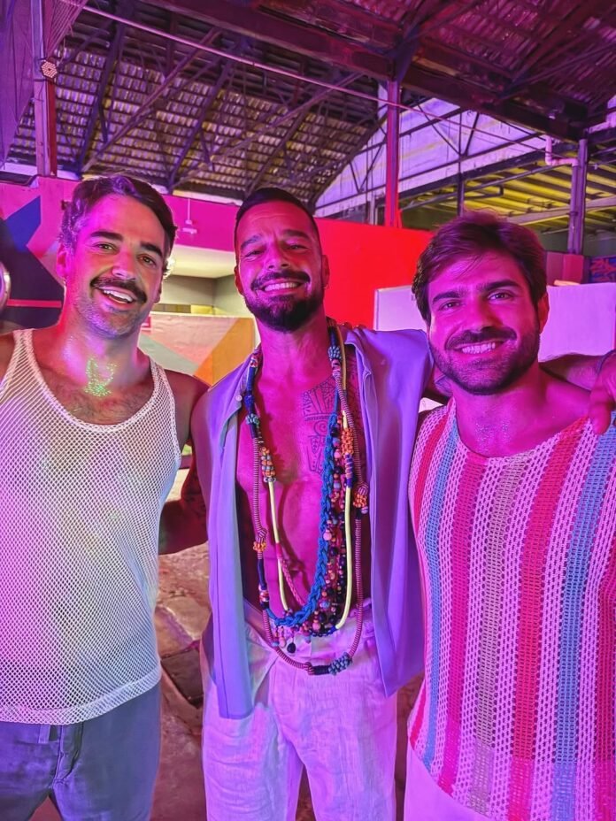 Foto do governador do RS Eduardo Leite com marido e Ricky Martin no carnaval repercute: ‘Marmita?’