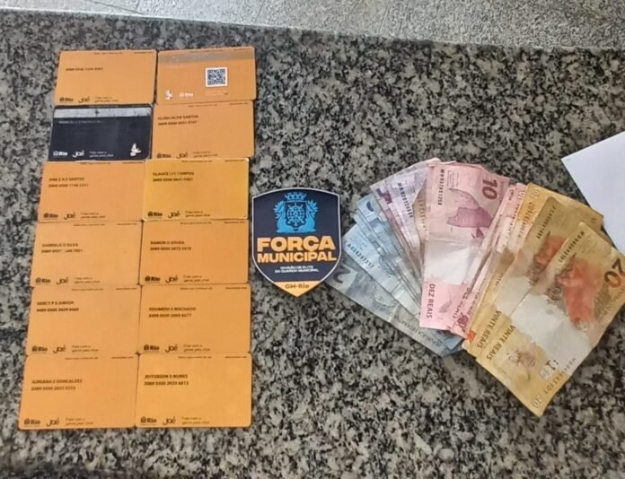 Agentes da Guarda Municipal (GM-Rio) prenderam dois homens no Centro do Rio nesta sexta-feira (10). Um deles carregava 12 cartões de transporte público JAÉ em nomes diferentes.