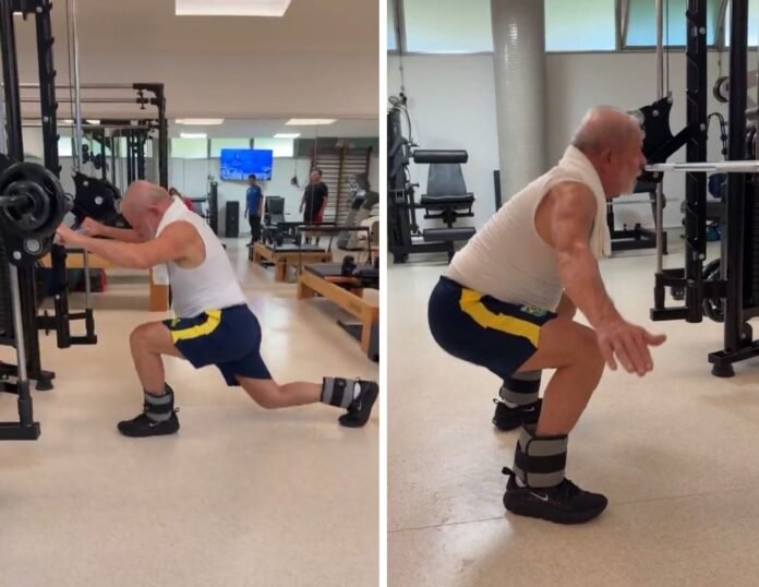 “São 7h10 da manhã. Aqui não tem IA (inteligência artificial). Meu marido está aqui desde as 6h da manhã. Já fez 4 minutos de esteira. Quem disse que ele não conseguia fazer. Está ao vivo, gente”, disse ela no vídeo, mostrando presidente fazendo agachamento com peso.