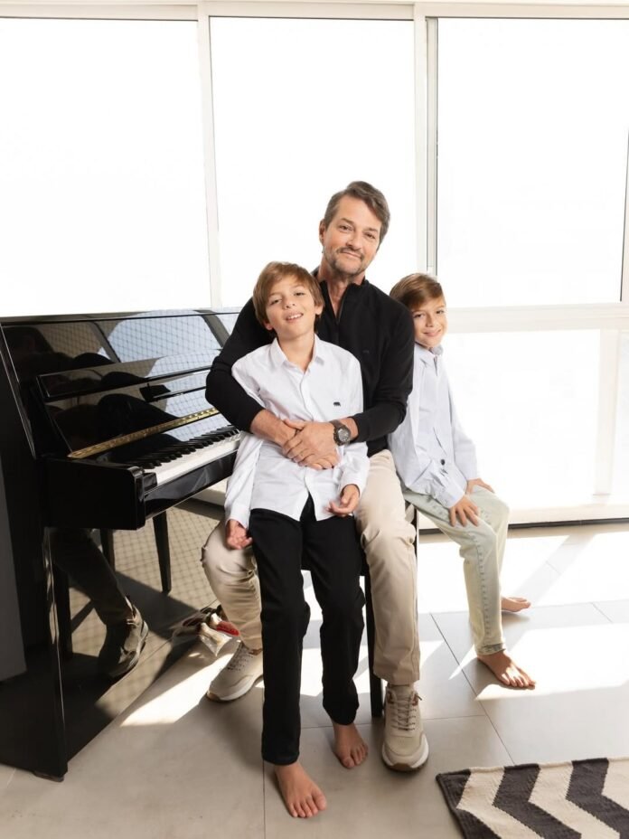 Marcelo Serrado com os filhos gêmeos, Felipe e Guilherme