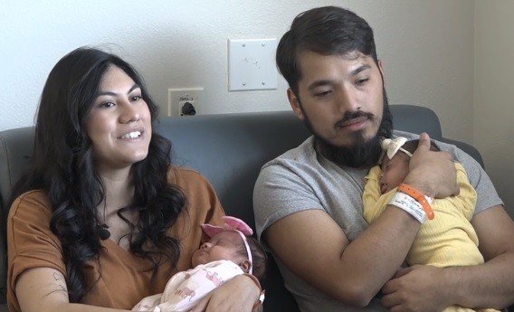 Adriana e Anthony na Unidade de Terapia Intensiva Neonatal em hospital no Texas