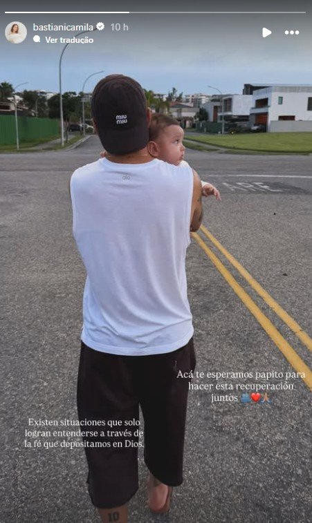 A mulher de Arrascaeta, astro do Flamengo, se pronunciou após a lesão do jogador. Em seu instagram, Camila Bastiani, mãe do filho do jogador, Milano, publicou um story com uma foto do uruguaio com o filho.
