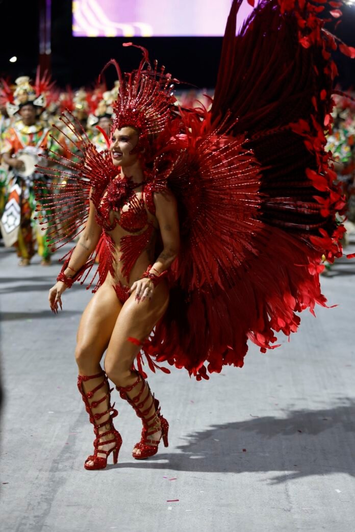 Ali, no treino, a rainha da Grande Rio já demonstrava que a costeira estava pesada. Ela aparece curvada, sem conseguir deixar o corpo ereto durante o ensaio. Em entrevista ao EXTRA, o professor contou que a aluna foi uma guerreira, e afirmou que a roupa estava realmente pesada, o que afetou o samba e a evolução corporal da loira na Avenida.
