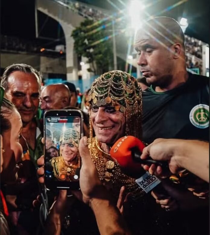 Vestindo uma fantasia marcada por correntes, lantejoulas e muito brilho em tons de verde, azul e amarelo, além de uma toca igualmente cintilante, o artista chegou sorridente e visivelmente tocado pelo momento. Acostumado a estadios lotados e grandes arenas desde os tempos dos Secos & Molhados, Ney destacou que a experiência na Avenida tem outra dimensão.