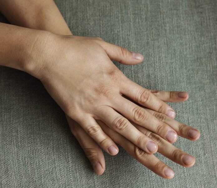 O clareamento das unhas acontece por conta de alterações no fluxo sanguíneo, deixando as unhas opacas, pálidas ou brancas, uma pequena faixa marrom-avermelhada na ponta além disso, alterações na textura das unhas também são um dos sinais; é comum, também, que o paciente perca a “meia-lua” na base, próximo das cutículas.
