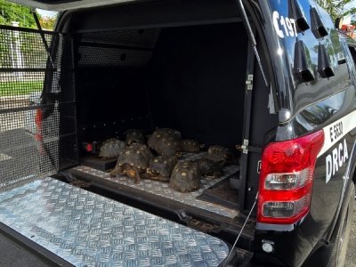 No local, a equipe foi recebida por um adolescente de 16 anos e, ao verificar a área dos fundos da propriedade, encontrou um viveiro sujo, sem alimentos e água, contendo 12 jabutis e um cágado mantidos em condições irregulares. Um dos animais estava solto no mato, em área cercada que impossibilita acesso natural da fauna ao ambiente.