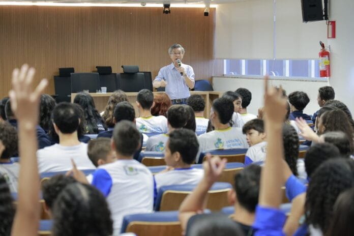 A Assembleia Legislativa de Goiás (Alego), por meio da Diretoria de Cultura, recebeu, na manhã desta quarta-feira, 16, alunos da Escola Municipal Barbara de Souza Moraes (6ª e 7ª séries do Ensino Fundamental) e do Colégio Estadual Agenor Cardoso de Oliveira (1º ano do Ensino Médio) para palestras de encerramento da celebração dos 25 anos de amizade entre Hebei e Goiás. O evento ocorreu no Auditório Francisco Gedda, no Palácio Maguito Vilela.