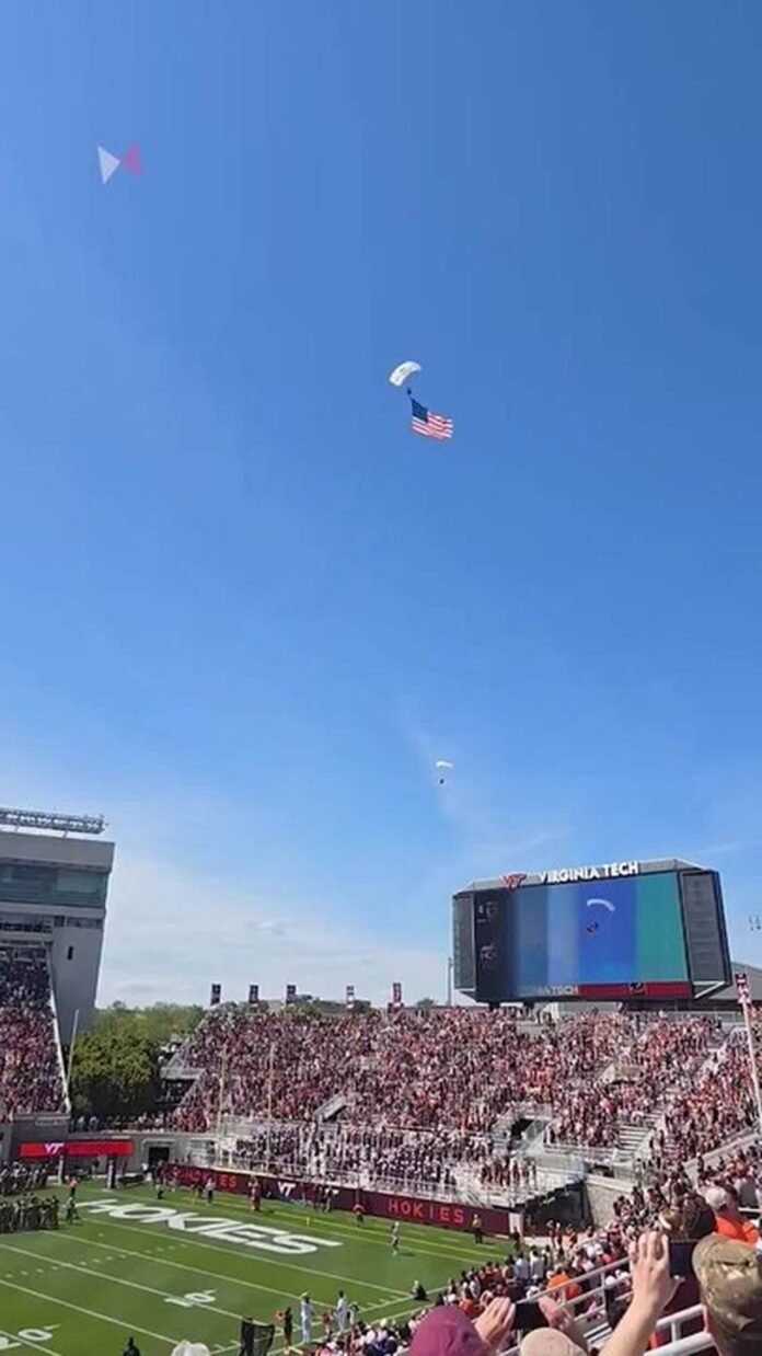 “Agradecemos os dias de jogo com a Nação Hokie e aos socorristas de Blacksburg e Virginia Tech, cujas ações rápidas garantiram o retorno seguro do paraquedista ao solo hoje, sem ferimentos. Temos o prazer de informar que o paraquedista foi resgatado em segurança e encontra-se estável. Nosso foco principal continua sendo o seu bem-estar. Estendemos nossa sincera gratidão aos socorristas, à equipe do evento e à equipe médica pela resposta rápida, coordenada e profissional”.