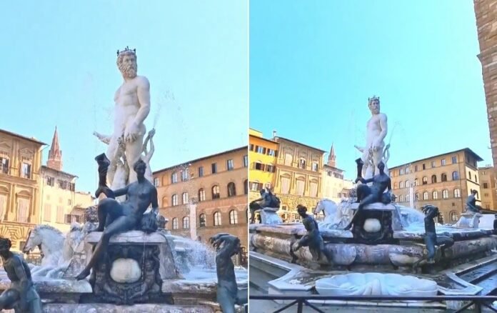Ela causou um prejuízo estimado em 5 mil euros (cerca de R$ 29 mil) à valiosa obra de arte da fonte na Piazza della Signoria.