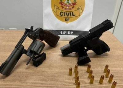 No interior do imóvel, os policiais localizaram duas armas de fogo guardadas em cofre localizado no quarto do investigado. O material foi recolhido, catalogado e apreendido. A unidade policial prossegue com as investigações.