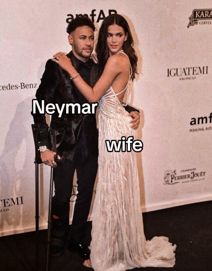 No entanto, em vez de uma imagem dele com atual mulher, Bruna Biancardi, mãe de duas dos seus quatro filhos, o perfil utilizou uma foto antiga do jogador com Bruna Marquezine.
