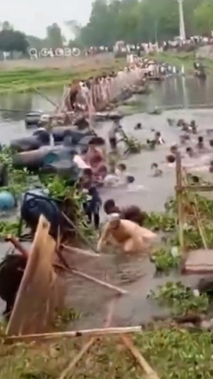 Ponte superlotada sobre rio desaba e mata ao menos quatro crianças